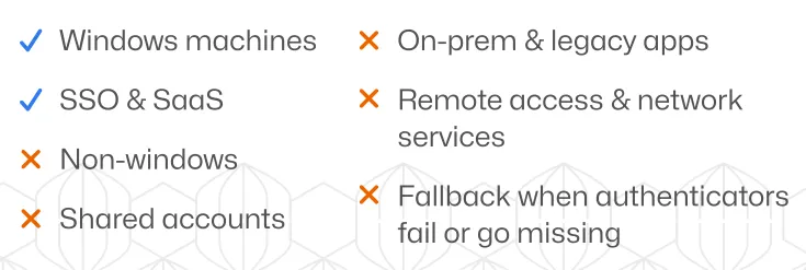 For all other resources, workers are forced to continue typing in their directory passwords, creating friction and phishing risks.