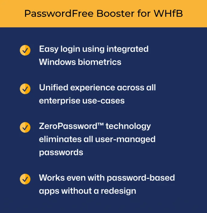 Familiar Windows Interface: Leverages WHfB and the integrated Windows biometrics process – no additional authenticators needed